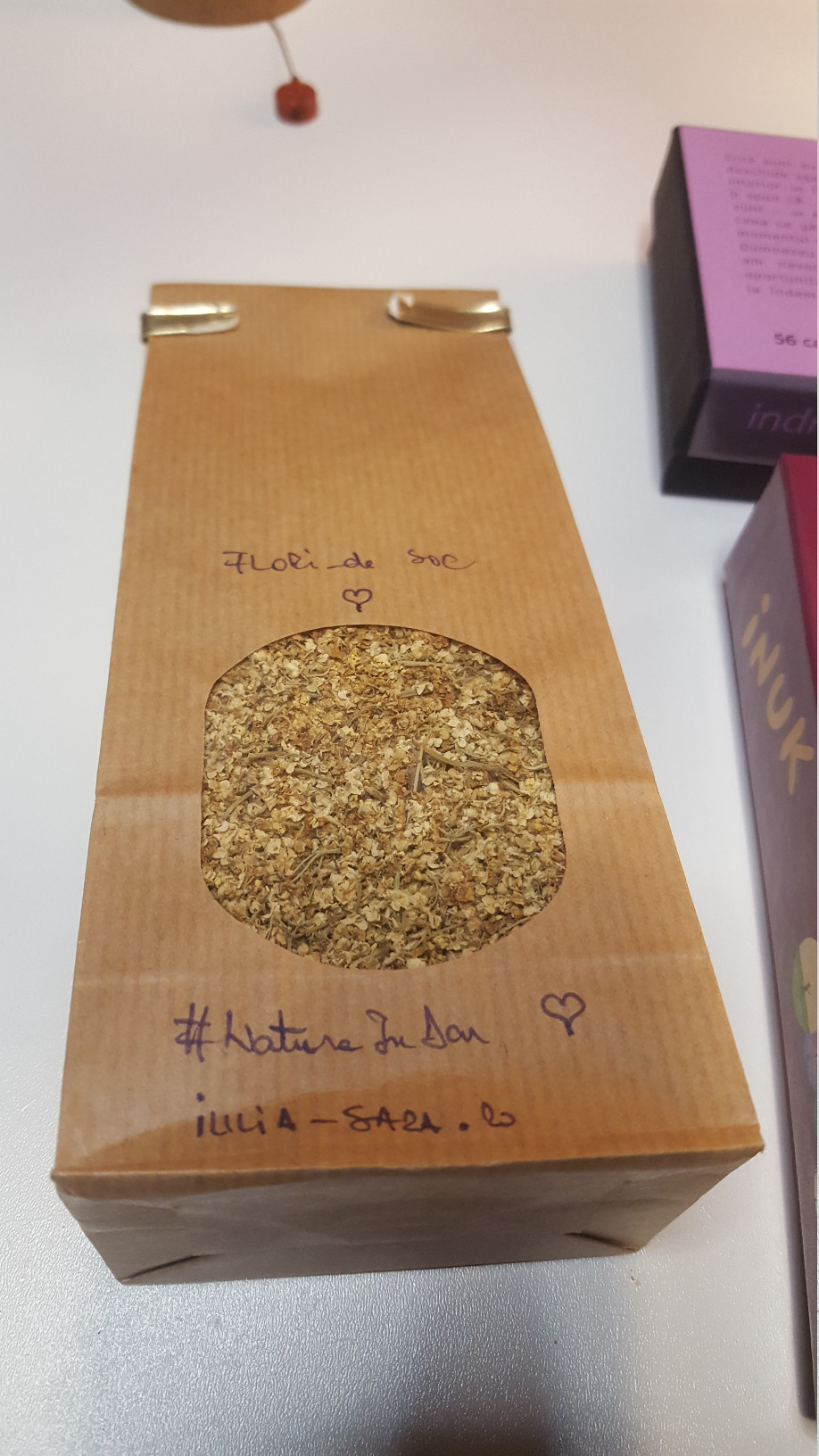 - Ceai din plante medicinale de la mine de pe ogor (min. 40 g). O sa primesti o optiune intre flori de soc sau flori de salcam. Florile sunt culese de mine de pe valea unde locuiesc, din spatele si din fata casei. Pamantul de la noi este odhnit de peste 30 de ani si este departe de trafic. Uscarea florilor se face lent in uscatoarele noastre solare, construite de mainile omului de langa mine. [corp | gust].