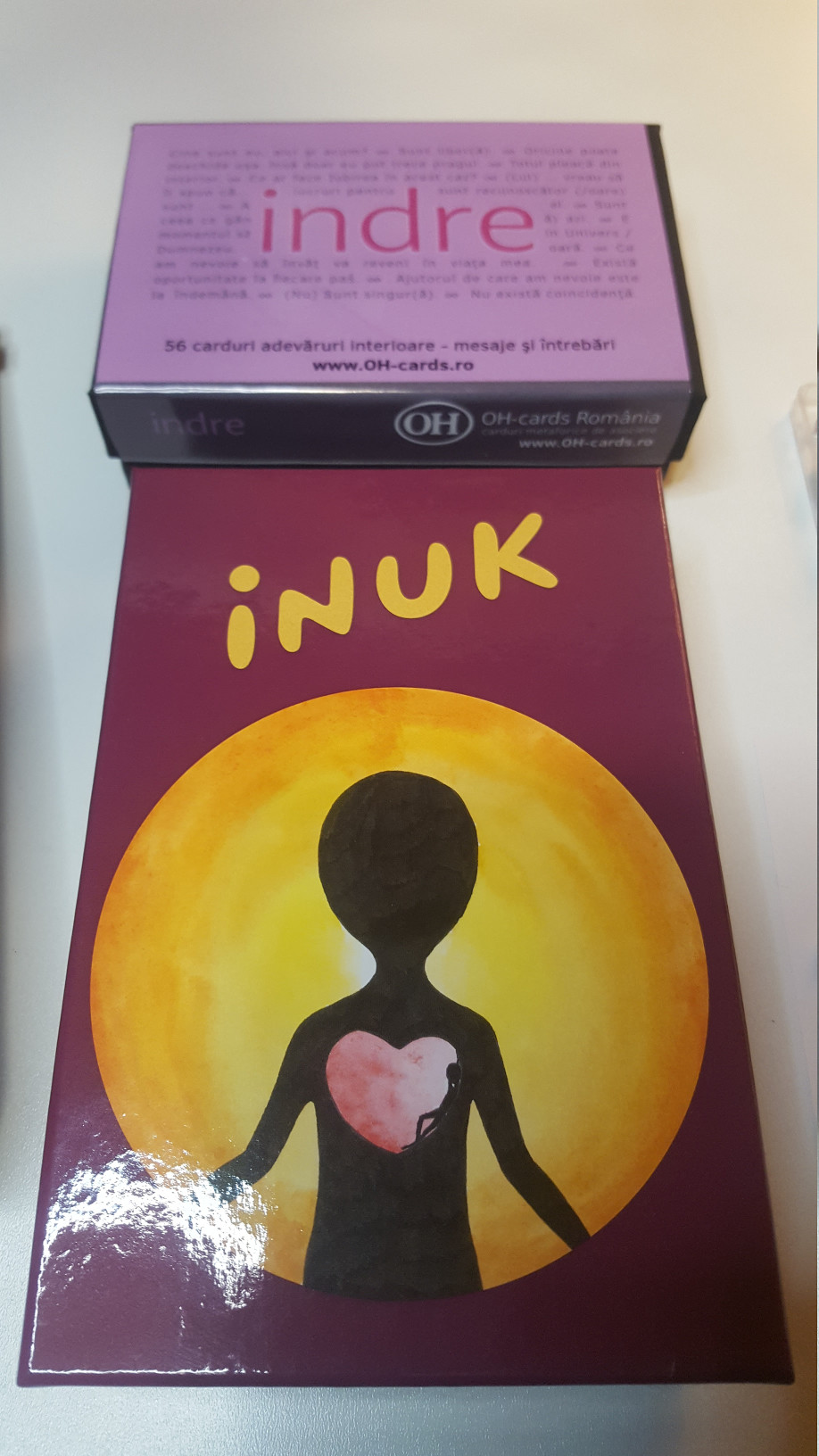 - Setul de carduri metaforice INUK – acest set minunat care puncteaza spre interiorul nostru, inspre autoc=-cunoastere. Cotnine 88 carduri cu imagini +10 carduri. Inuk stimuleaza partea noastra dreapta a creierului – emotii, imaginatie si creativitate. [minte, corp, spirit | ganduri, emotii, ochi].